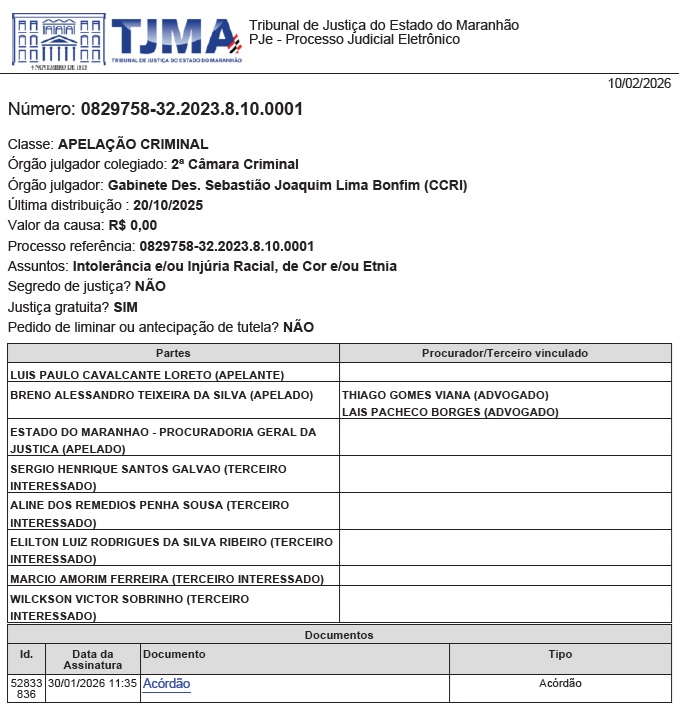 Por unanimidade, a 2ª Câmara Criminal rejeitou o recurso de apelação apresentado pela defesa do empresário e confirmou a sentença da 6ª Vara Criminal, que o condenou com base nos artigos 8º e 20 da Lei nº 7.716/1989, que tipifica crimes resultantes de discriminação. O acórdão foi relatado pelo desembargador Sebastião Joaquim Lima Bonfim.