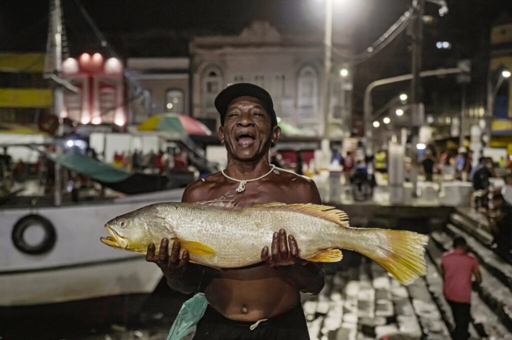 Quinta-feira, 2 da manhã. O cheiro de pitiú, odor pungente do peixe fresco, é o primeiro sentido do corpo e a primeira assinatura deste lugar. Entre a Praça do Relógio, a Feira do Açaí de um lado e a Pedra do Peixe no outro. A primeira porção da cidade a acordar enquanto o resto da Belém dorme. Na pretidão das ruas, caminhões de lixo circulam pela capital simbólica do Brasil que sediará a 30ª Conferência das Partes, a COP30. Ao amanhecer, nesta quinta-feira, 6 de novembro, líderes globais se reuniriam para a Cúpula dos Líderes, com presidentes, primeiros-ministros e ministros, que antecede oficialmente a COP30. Mas, para quem vive da feira e da Pedra do Peixe, a pauta de quem move e alimenta a cidade é outra.