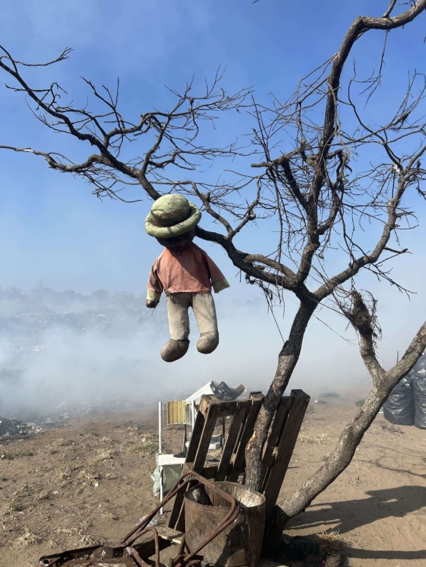Quando o sol e a fumaça pesam sobre os corpos exaustos, os catadores buscam abrigo em um barraco improvisado, rodeado de sacos gigantes abarrotados de garrafas pet. É o momento da resenha, do café e da contação das histórias sobre a vida no lixão e os achados inusitados.