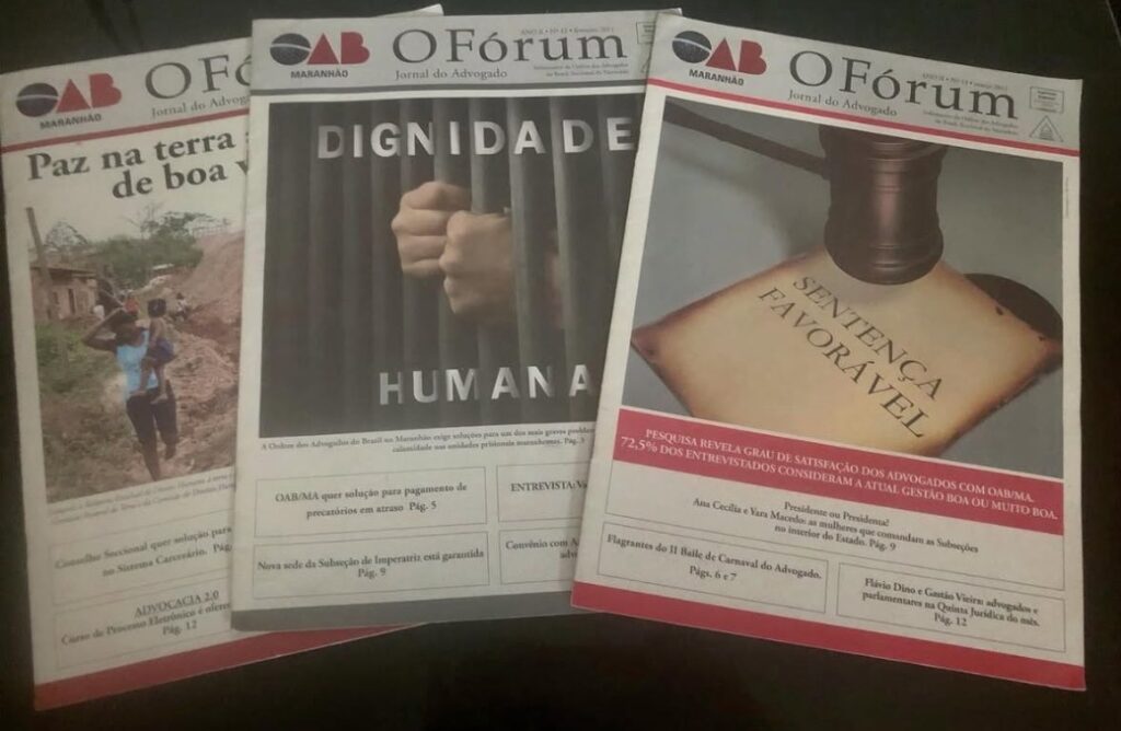 À frente do Núcleo de Comunicação da OAB-MA, criamos uma publicação mensal, com projeto editorial que trazia colunas como Trâmites e Estante do Advogado, Entrevista nas páginas centrais, em formato tão agradável que os advogados chamavam de “revista”. Um boletim eletrônico era enviado diariamente por e-mail a cada inscrito na Ordem, com todas as informações atuais de interesse da classe, além de um novo site e da produção de publicações especiais como um Caderno Especial encartado nos jornais locais sobre os “80 anos de história irrevogável da OAB”. Era uma equipe de excelência, sob direção do advogado Antonio Nunes, presidente da inédita Comissão de Eventos e Comunicação Estratégica, criada pela gestão: Alice Pires, Aline Cristina, Handson Chagas, Eudemar Gomes e outros que também passaram por lá.