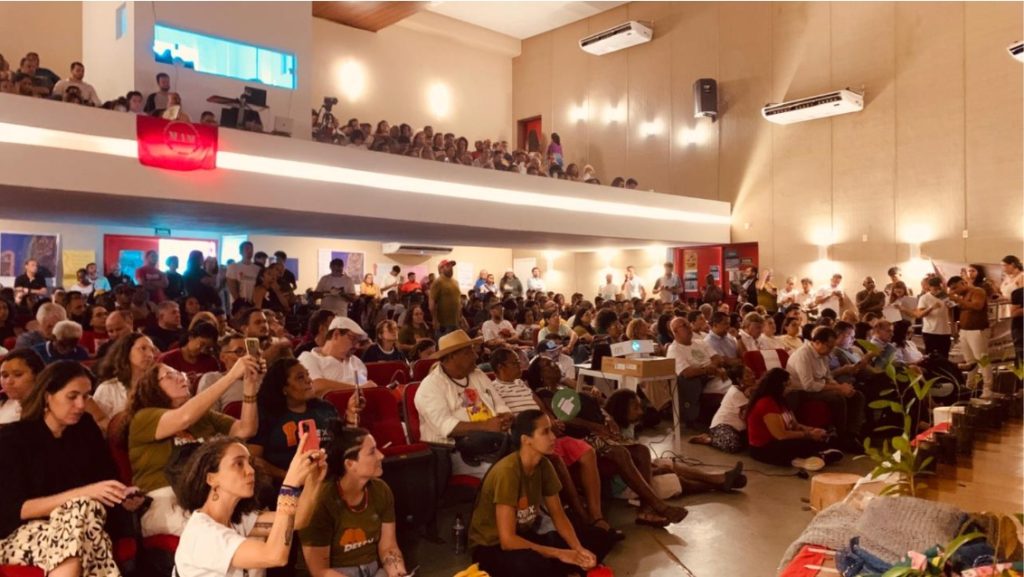 O auditório do cineteatro estava lotado, com as liderançaa das comunidades no local. Mais de 98% dos presentes se manifestaram a favor do decreto de criação da reserva.